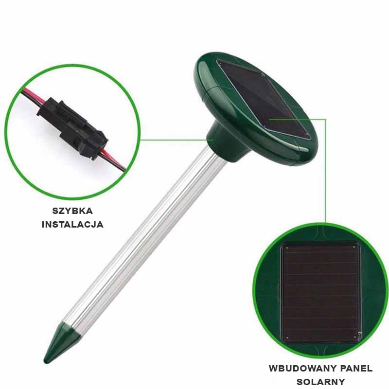 Bezobsługowy solarny odstraszacz szkodników, kretów, nornic